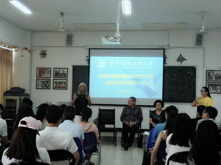 【本网讯】6月8日,美国加州州立大学洛杉矶分校健康与人文服务学院院长Ron Vogel教授、社会工作系系主任Evaon Wong-kim教授、社会工作系Sivon Rhee教授一行来太阳集团龙泉校区进行了学术交流。Evaon Wong-kim教授做:“美国健康社会工作的角色功能及课程体系设置”的学术讲座,文化艺术学院社会工作师生60余人聆听了讲座。讲座由社会工作与社区发展研究所所长陈会全主持。