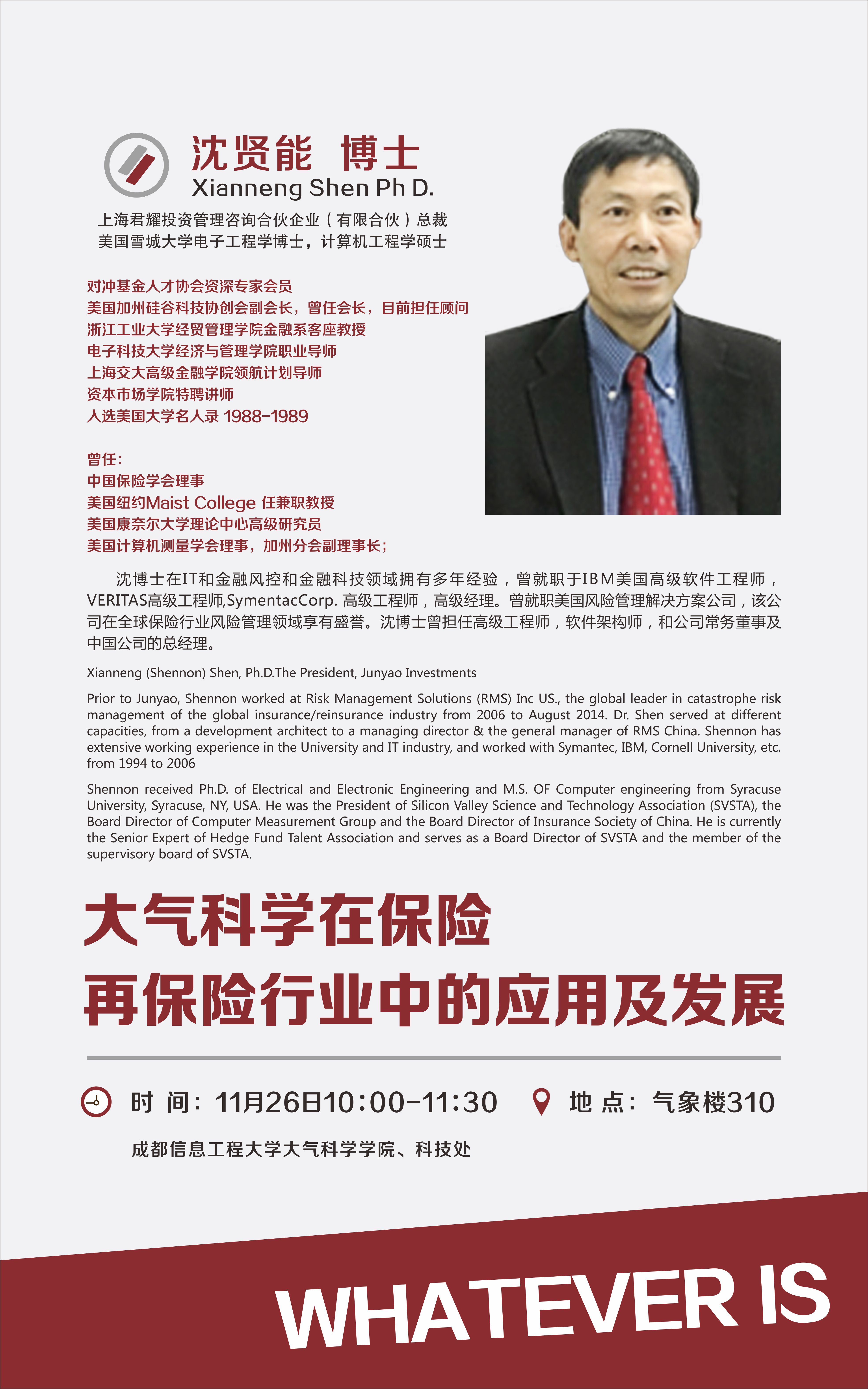 【学术预告】大气科学在保险再保险行业中的应用及从投资学角度看职业改变系列讲座